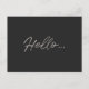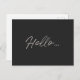 Minimalist, simple and stylish "Hello..." quote postcard with modern handwriting script style text in gray silver on an off black chalk board style background, giving a fun, classic timeless look. The reverse has been left blank for your own message. What better way to say hello!