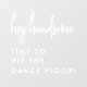 Modern wedding bathroom mirror decal with the text "hey handsome, time to hit the dance floor!" Modern white script font wedding bathroom mirror decal. Colours can be changed in the design tool if you like! Please adjust the font size and text placement in the design tool if you pick another size or orientation.