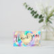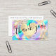 say big thank you and show your love and customer appreciation with this modern script card with the heart and holographic background, inviting them to purchase again, leave a review and tag you on social media. You can change the colours of the heart, text and icons to fit your branding