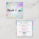 say big thank you and show your love and customer appreciation with this modern script card with the heart and holographic background, inviting them to purchase again, leave a review and tag you on social media. You can change the colours of the heart, text and icons to fit your branding