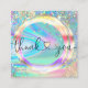 say big thank you and show your love and customer appreciation with this modern script card with the heart and holographic background, inviting them to purchase again, leave a review and tag you on social media. You can change the colours of the heart, text and icons to fit your branding