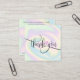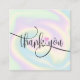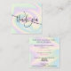 say big thank you and show your love and customer appreciation with this modern script card with the heart and holographic background, inviting them to purchase again, leave a review and tag you on social media. You can change the colours of the heart, text and icons to fit your branding