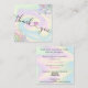 say big thank you and show your love and customer appreciation with this modern script card with the heart and holographic background, inviting them to purchase again, leave a review and tag you on social media. You can change the colours of the heart, text and icons to fit your branding