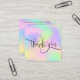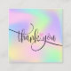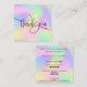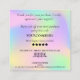 say big thank you and show your love and customer appreciation with this modern script card with the heart and holographic background, inviting them to purchase again, leave a review and tag you on social media. You can change the colours of the heart, text and icons to fit your branding