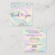 say big thank you and show your love and customer appreciation with this modern script card with the heart and holographic background, inviting them to purchase again, leave a review and tag you on social media. You can change the colours of the heart, text and icons to fit your branding