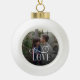 Modern Script Love Custom Engaged Couples Photo Ceramic Ball Christmas Ornament