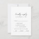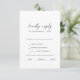 This modern script menu choice RSVP card is perfect for a minimalist wedding. The simple black and white design features unique industrial lettering typography with modern boho style. Customisable in any colour. Keep the design minimal and elegant, as is, or personalise it by adding your own graphics and artwork. This wedding response card conveniently asks guests what meal they would like at your reception.