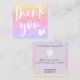 Modern minimalist white,mermaid purple pink and gold glitter business order thank you brush script font with a heart. Add your social media. With an elegant signature script font, all the colours are editable , add your logo.