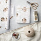 Christmas gift wrapping paper feature modern Merriest Christmas script and pine tips, with personalized family name and two photos in sage green and gold. simple and elegant.