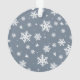 Stylish photo ornament design for the holidays features your favorite family image with Merry Christmas text in modern brushed script lettering. Personalize the custom text with your last name or family name and the year. A simple pattern of white winter snowflakes dresses up the back of the ornament. The slate blue gray background color can be customized to coordinate with your holiday decor. Photo tip: crop photo to square format before uploading it to the design template.