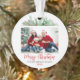 Gift a personalised holiday ornament this season, instead of a traditional card, with your own family photo, wedding picture, or pet photo to create a meaningful keepsake. This ornament features "Merry Christmas" in elegant script, along with your family name and the year. Lush greenery, including evergreen branches and red holly berries, adds a festive touch. Customise all text and photo options to make it uniquely yours. A perfect way to spread holiday cheer. Merry Christmas Create Your Own Family Photo Ornament Simple Elegant