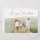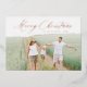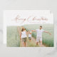 Modern minimalist merry Christmas card design features elegant trendy merry Christmas script in real rose gold foil, with personalised family photo, simple and unique.