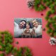 Modern minimalist merry Christmas card design features elegant trendy script and typography in real gold foil, with personalised family photo, simple and unique greeting cards.
