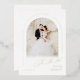 Minimalist save the date card features modern script and chic arch frame in real gold foil, with couple's photo, elegant and simple, great for modern classy wedding.