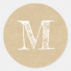 Modern Script Monogram Initial Kraft Classic Round Sticker