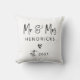 This modern, trendy black and white pillow features your last name and cool, hand lettered script that says "Mr & Mrs", along with a scribbled heart. A chic and elegant wedding keepsake for the newlyweds that will fit perfectly with any decor!