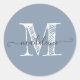 Modern Script Name Monogram Initial Dusty Blue Classic Round Sticker