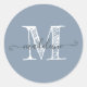 Modern Script Name Monogram Initial Dusty Blue Classic Round Sticker