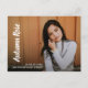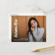 Modern graduation announcement postcard with the graduate's name in bold white script vertically along the left side with the class year and school name at the bottom, over your favourite photo. The backside has your personal message and return address for easy mailing. This announcement postcard is great for a girl high school graduate.
