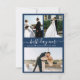 Minimalist, Elegant Hand Lettered Navy 3 Photo Collage Wedding Thank You Card. Stylish, simple wedding thank you card template featuring three (3) photo on the front and one (1) photo on the back. With the text "best day ever" in a cursive swirly hand lettered typography script font in white on navy blue colour background. Personalise your name and thank you message. If you prefer to handwrite your note, delete the sample text to make more space. If You need help or matching item, please contact to me!