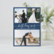 Modern Script Navy 3 Photo Collage Wedding Thank You Card