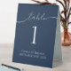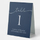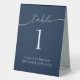 Modern Script Navy Blue Wedding Table Number Table Tent Sign to create an elegant table setting for a classic wedding. Personalise it on the front and back.