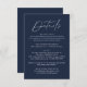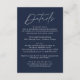 Simple and elegant wedding details card featuring a handwritten white script mixed with modern lettering against a navy background. Personalise the minimalist wedding details card with your wedding details such as reception information, hotel accommodations, wedding website, etc. The navy wedding details card is perfect for modern weddings.