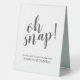 featuring title "Oh Snap!" in modern script font with details in modern sans serif font on white background.
