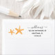 A modern orange starfish personalised return address label. This custom address label features an elegant calligraphy script font and two starfish.