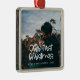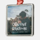 Modern script Our First Christmas wedding photo Metal Tree Decoration
