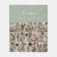 Modern 5 family member script personalised gift fathers day, mothers day, birthday, Christmas, anniversary home decor sage green and white photo collage blanket design.