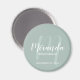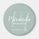 This magnet features personalised bridesmaid's name in white modern script font style and monogram in sage green modern script font style as background with title and wedding date in white modern sans serif font style on sage green background.