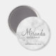This magnet features personalised bridesmaid's name in grey modern script font style with title and wedding date in grey modern sans serif font style on white marble background.