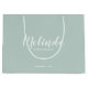 featuring personalised bridesmaid's name in white modern script font style with title and wedding date in modern sans serif font style on sag green background.