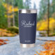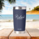 featuring personalised groomsman's name in white modern script font style with title and wedding date in modern sans serif font style on navy blue background.