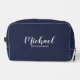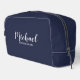 featuring personalised groomsman's name in white modern script font style with title and wedding date in modern sans serif font style on navy blue background.