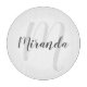 featuring personalised name in grey modern script font style and monogram in light grey modern script font style as background