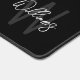 This design features personalised name in white modern handwriting script font style and monogram in light grey modern sans serif font style as background, on black background.