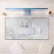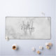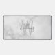 This design features personalised name in grey modern handwriting script font style and monogram in light grey modern sans serif font style as background, on white marble background.