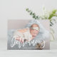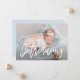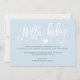 This sweet and stylish birth announcement card features the newborn's photo on the front, along with modern handwritten script that says "introducing" where you can add your newborn baby's name. There is a spot for a personal message and baby's birth information on the light blue back, along with more trendy script typography that says "Hello, baby."