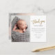 This modern photo thank you note features gold script thank you, personal message and a vertical photo on the front. The back includes a second baby photo that is a full bleed horizontal photo. Click edit to customise this design.