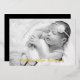 The announcement introduces baby in a modern fashion with a touch of elegance. The front of the card features a picture of baby, along with their name at the bottom. The back of the card provides birth information and a complimentary remark the names of the parents.