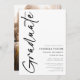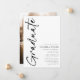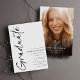 This is a minimalist and modern graduation announcement card. It is a simple and stylish handwritten script design in classic black and white, with a photo at the back. Please contact the designer for any queries about this design.