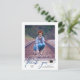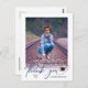 This simple photo graduation thank you postcard features dark blue modern script "thank you" that appears below the vertical photo. The backside offer custom text for a personal thank you message.