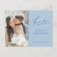 Modern wedding thank you cards with your favourite wedding day photo. These budget-friendly thank you postcards are in a script blue and grey design. Colours can be changed to match your photo or wedding colours - contact me with your requests.