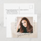 This modern, elegant 2025 graduation announcement features one photo of the college or university graduate. Trendy black script forms the words "graduate" and "twenty twenty-four" framing the photo of the graduate. A chic beige paint texture is situated behind the photo. You can adjust the wording on the back of the card to make this either a simple graduation announcement or a grad party invitation. A stylish and simple graduation design for the class of 2024!