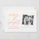 Modern script photo merry & bright christmas card. Modern polka dot backer.