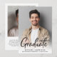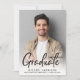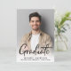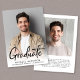 Modern graduation announcement featuring the grad's photo overlayed with "Graduate" in a contemporary script. Add their name, class year and school in simple typography. Add an additional photo on the back along with your personalised message.