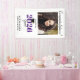 This vertical banner features a graduation design with a square photo frame for a picture of the graduate. Personalise this modern banner with the graduate's name. The text reads "Congratulations! Class of 2026 Grad" with the year appearing in purple. The design is accented with calligraphy text and a graphic of a graduation cap.
