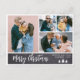 Budget Modern, Rustic 4 Photo Collage Merry Christmas Brush Script Grey Black Chalkboard Holiday Postcard. This festive, minimalist, four (4) family photo holiday card features a pretty photo collage and saying „Merry Christmas” greeting text is written in a hand lettered brush script font type. Pretty greeting card for your family and friends in Winter Holiday season.